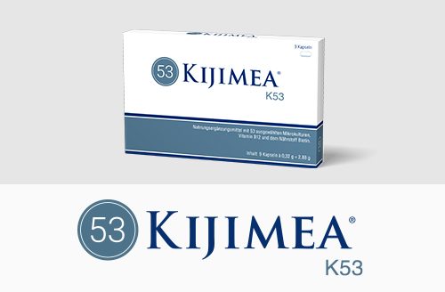 Kijimea® K53 is a dietary supplement containing 53 selected microculture strains found in the natural intestinal flora of humans. One pack of Kijimea® K53 contains 1 trillion microcultures.